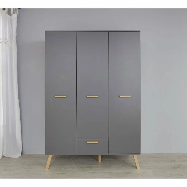 Der elegante trendteam Mats Kleiderschrank überzeugt mit einem modernen Design und guter Verarbeitung. Durch die geräumige Bauweise haben Sie viel Platz für alles was im Zimmer seinen Platz finden soll. Der Kleiderschrank ist mit 3 Türen ausgestattet. Mehre Einlegeböden, 2 Kleiderstange und 1 Schubkasten bieten eine Menge Platz für die gesamte Babykleidung.