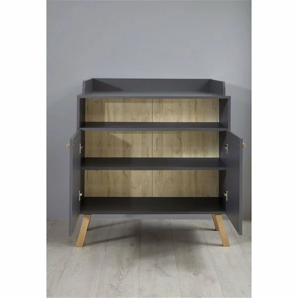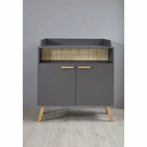 Die elegante trendteam Mats Wickelkommode überzeugt mit einem modernen Design und guter Verarbeitung. Durch die geräumige Bauart haben Sie viel Platz für alles was im Zimmer seinen Platz finden soll. Die Wickelkommode verfügt über 2 Türen und 1 offenes Fach, diese bieten viel Stauraum für alle Hygieneartikel.