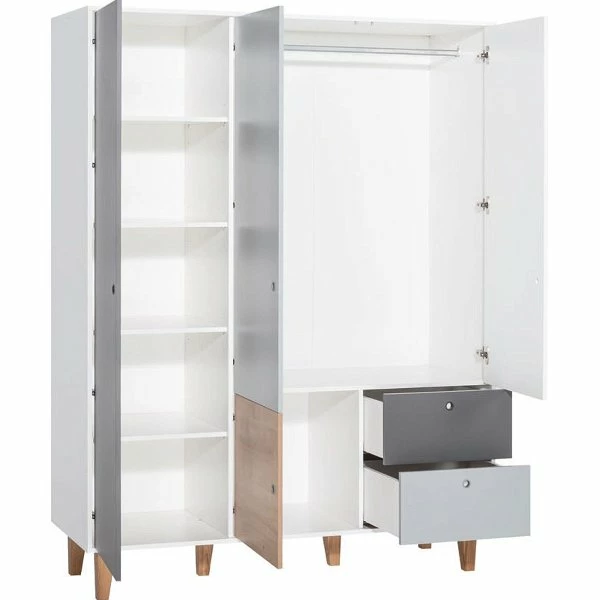 VOX Concept Baby Kleiderschrank 3-türig white/grey/graphite/oak