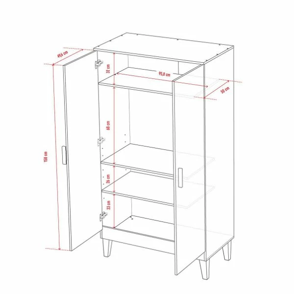 Maße: 100 × 55 × 186,5 cm (B x T x H)