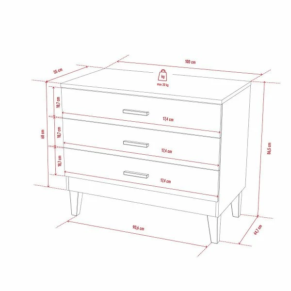 Maße: 100 × 55 × 86,5 cm (B x T x H)