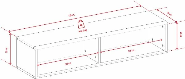 Maße: 120 x 30 x 26,5 cm (B x T x H)