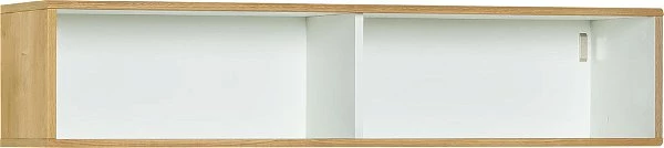 Der VOX Nature Wandregal hat zwei große offenen Fächer, die viel Raum für Deko und Aufbewahrung bieten. Das Wandregal ist außen im Eichendekor und innen weiß gehalten