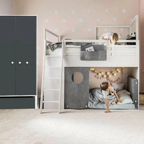 VOX Nest ist eine moderne und, elegante Kinder- und Jugendzimmer Kollektion in einer schönen Farbkombination von Lärche weiss und graphite. Die Möbel von VOX Nest zeichnen sich auch durch eine hochwertige Verarbeitung, Stabilität und Funktionalität aus. Türen haben hochwertige Scharniere und Schubladen sind auf hochwertigen Quadro-Gleitschienen montiert, die für müheloses Öffnen und Schließen sorgen. Türen und Schubladen sind zusätzlich mit einem Soft-Close-System ausgestattet.