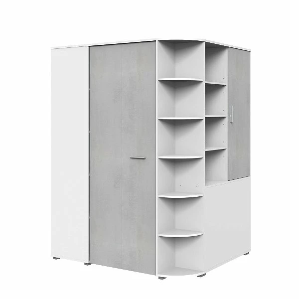 Wimex Joker Eckkleiderschrank begehbar Weiß / Beton-Nachbildung lichtgrau